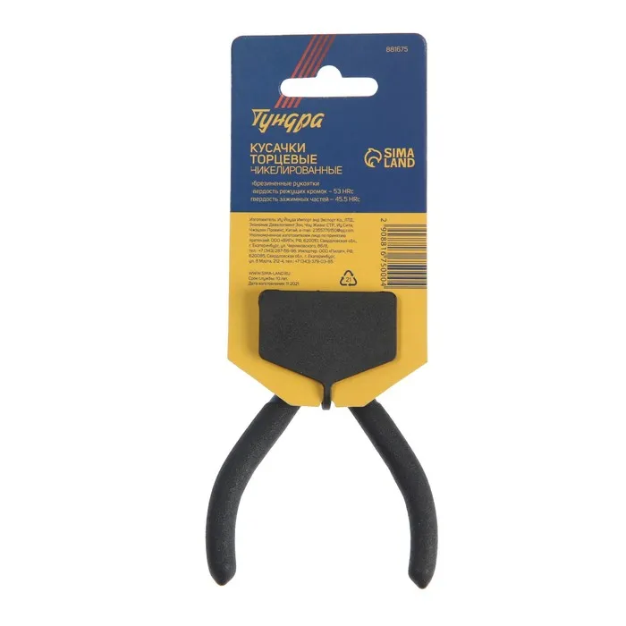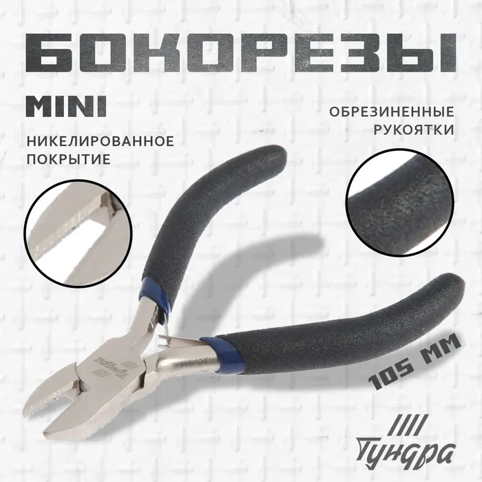 Кусачки торцевые ТУНДРА mini, никелированные, обрезиненные рукоятки, 105 мм — Характеристики