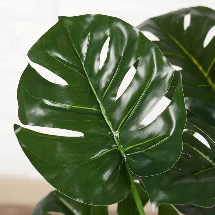 Монстера известна своими крупными зелеными листьями, которые придают пространству свежесть и живость. Искусственный вариант не требует ухода, но при этом сохраняет все преимущества живого растения.