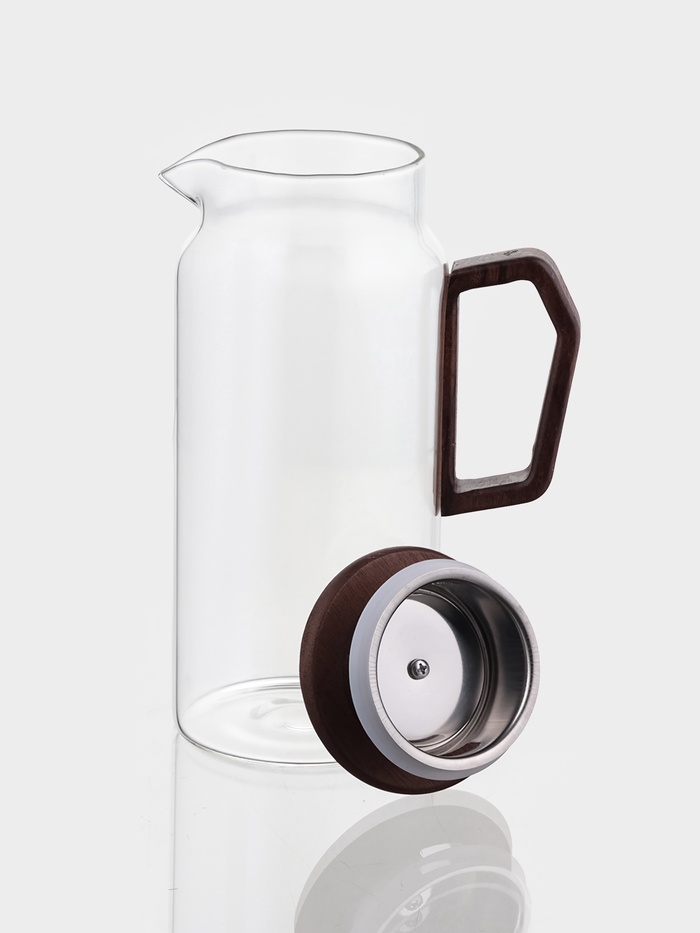 - Деревянная ручка для комфорта: кувшин удобно держать — дерево не нагревается и не скользит в руке.