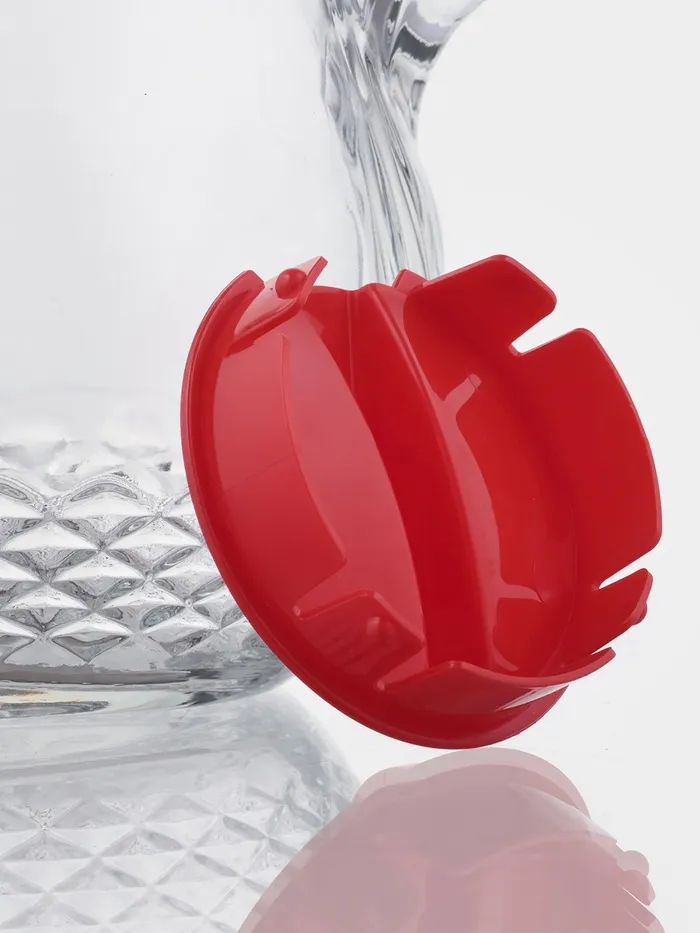 - Пластиковая крышка: надёжно фиксируется на горловине, предотвращает проливание и удобна в использовании.