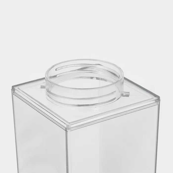 Бутылка с крышкой выполнены из прочного полистирола (PS), который прослужит вам долгие годы, пластик не помутнеет со временем. Её удобно мыть, так как снимается верхняя часть.