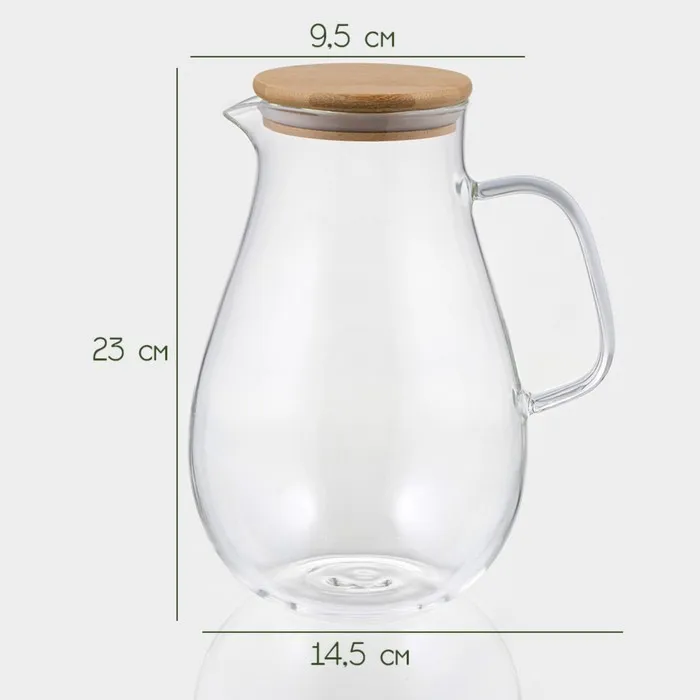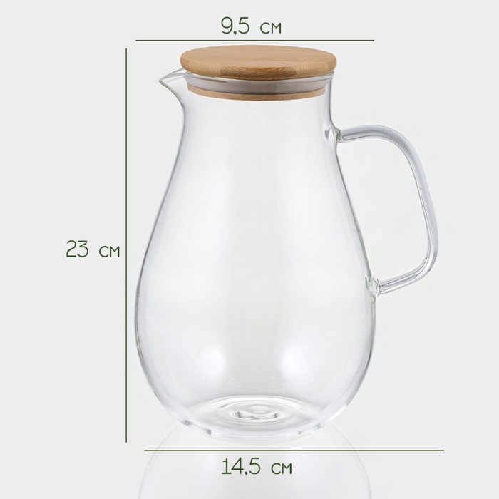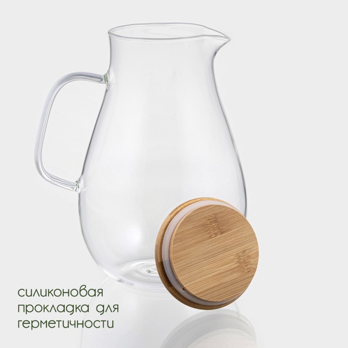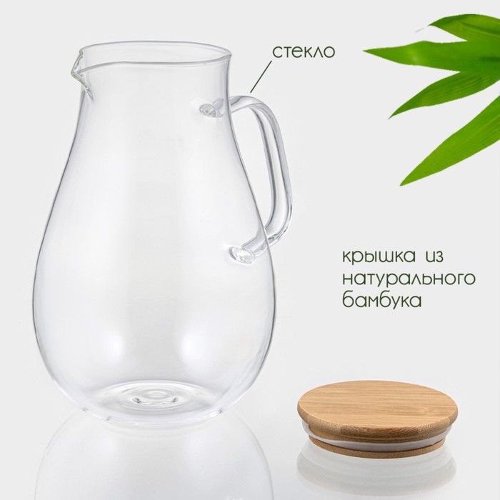 Кувшин для воды BellaTenero «Эко», 1,8 л, 14,5×23 см, стекло, с бамбуковой крышкой, прозрачный — Характеристики