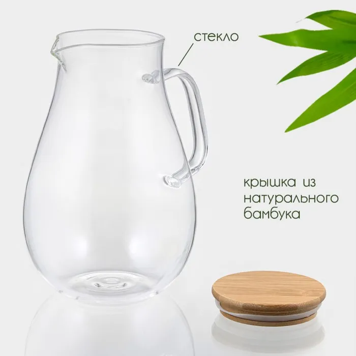 - Бамбуковая крышка: плотно закрывает кувшин, сохраняя свежесть продуктов.