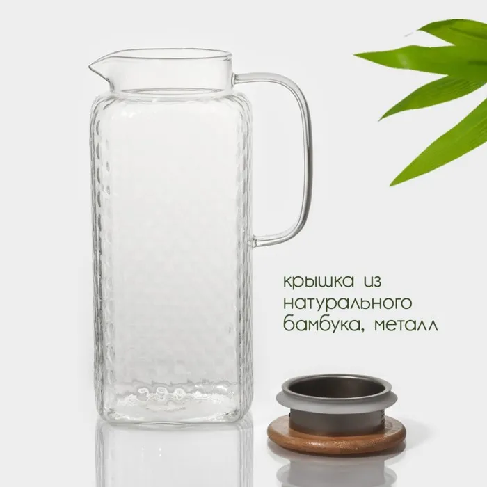 Кувшин для воды BellaTenero «Эко» — идеальный выбор для тех, кто ценит экологичность и стиль. Элегантный и функциональный аксессуар станет незаменимым помощником в вашем доме. Кувшин изготовлен из качественного стекла, а крышка — из бамбука. Бамбуковая крышка обеспечивает плотное прилегание, делая использование кувшина ещё более комфортным и безопасным. Объём кувшина составляет 2 литра, что позволяет использовать его для приготовления различных блюд и напитков для всей семьи. Компактные размеры позволяют удобно разместить кувшин на кухне или в столовой. Не упустите возможность обновить свою кухню с помощью этого прекрасного кувшина с бамбуковой крышкой «Эко»! Он станет вашим верным помощником и стильным аксессуаром, который будет радовать вас каждый день.