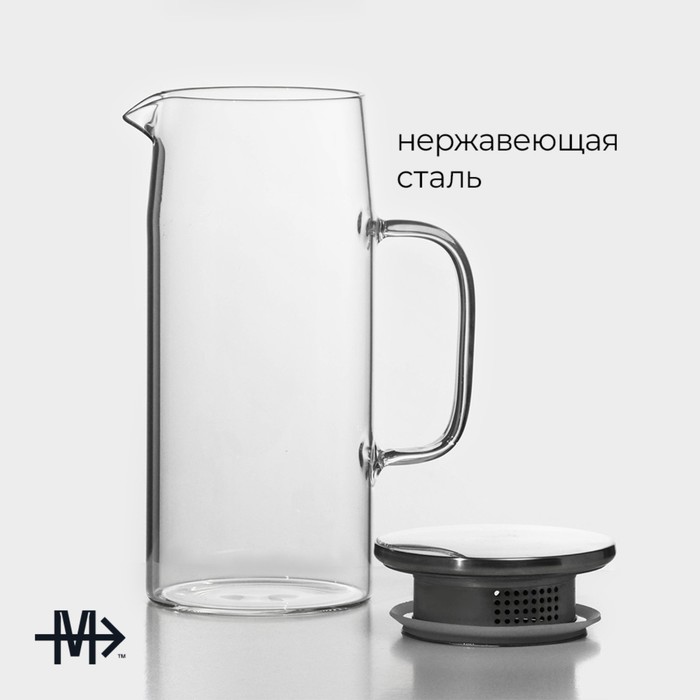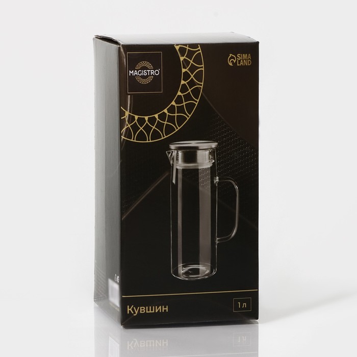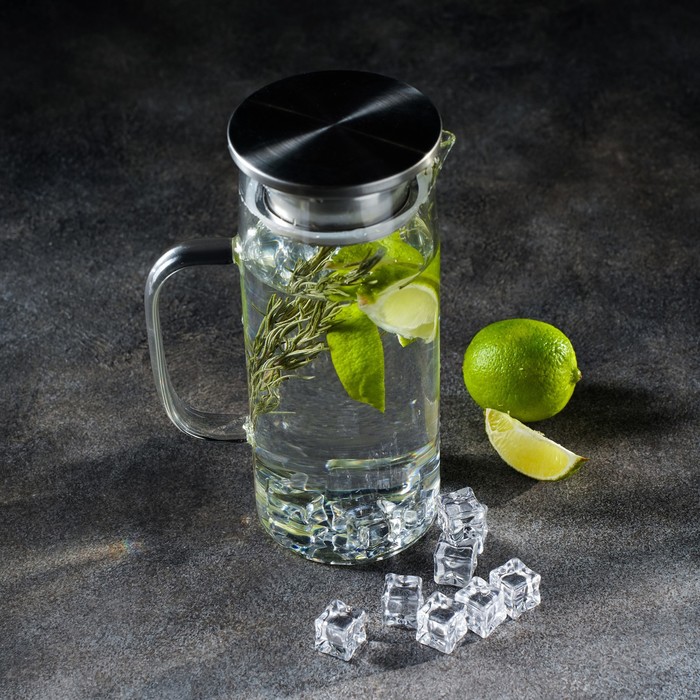 Кувшин для воды Magistro «Богема», 1 л, 9×23 см, стекло, с металлической крышкой, прозрачный, серебристый — Характеристики