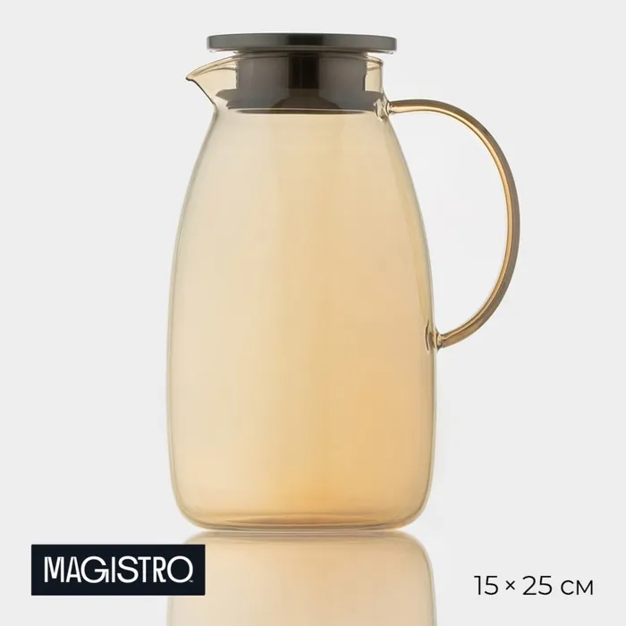 Кувшин для воды Magistro «Сара», 1.3 л, 16.9×19.5 см, стекло, с металлической крышкой, прозрачный — Характеристики