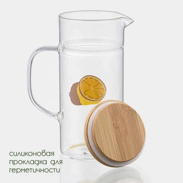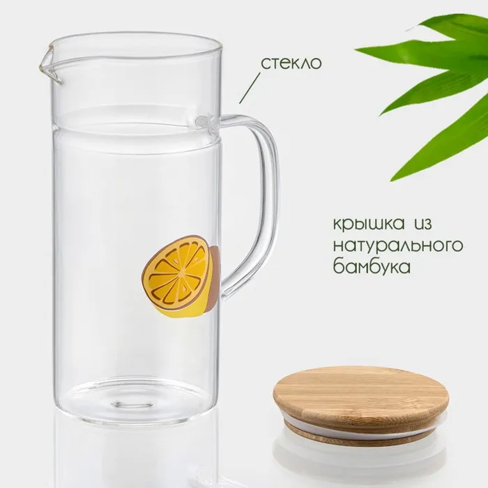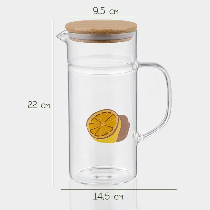 Кувшин для воды мерный BellaTenero «Эко. Фрукты», 1.2 л, 14.5×9.5×22 см, стекло, с бамбуковой крышкой, прозрачный — Характеристики