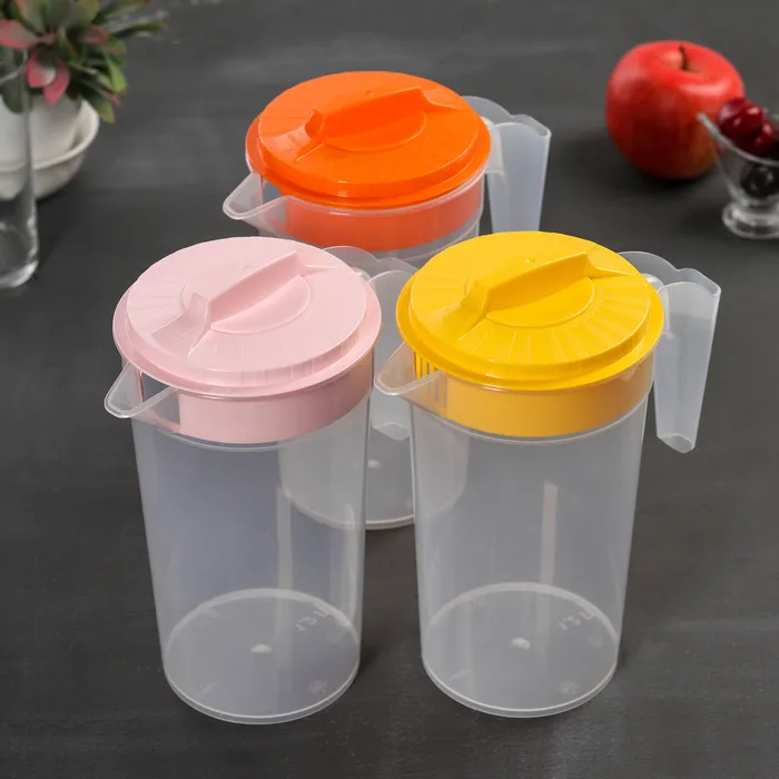 Пластиковый кувшин для воды, с крышкой для теплых, прохладительных и холодных напитков. Кувшин для воды благодаря своему стильному дизайну подойдет под любую кухню. В кувшин для напитков можно налить холодный чай, сок, воду, компот, морс, лимонад, вино.