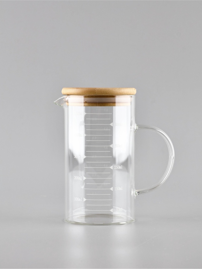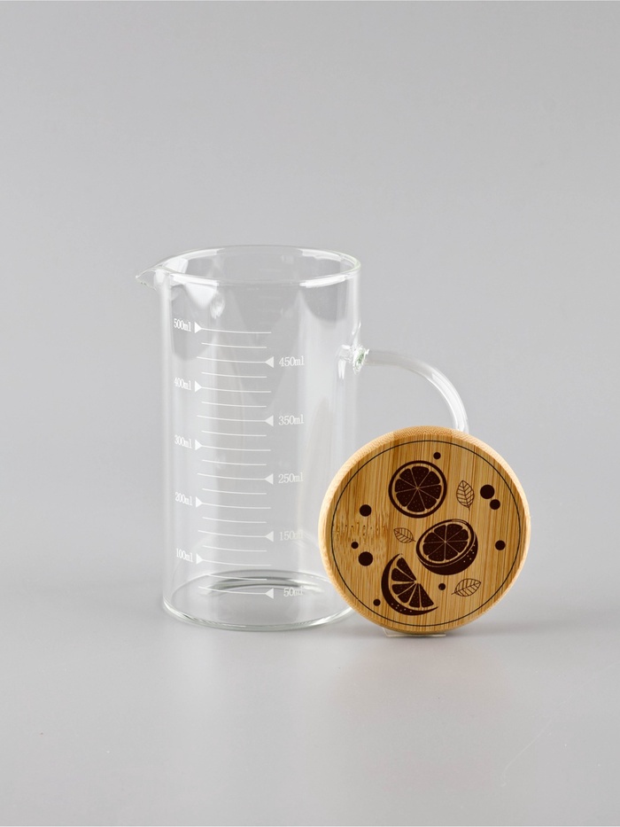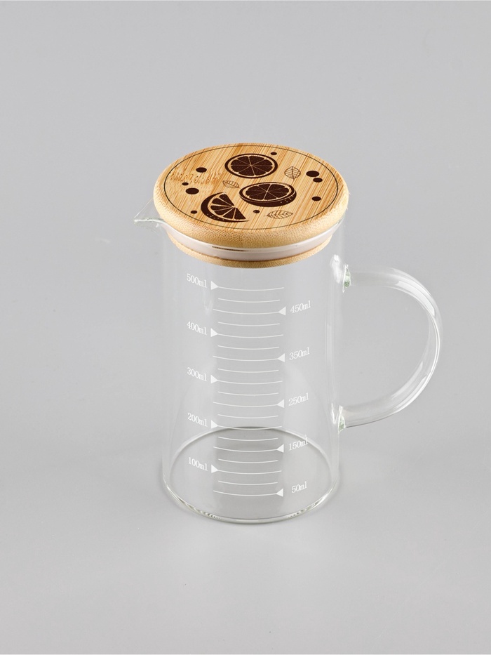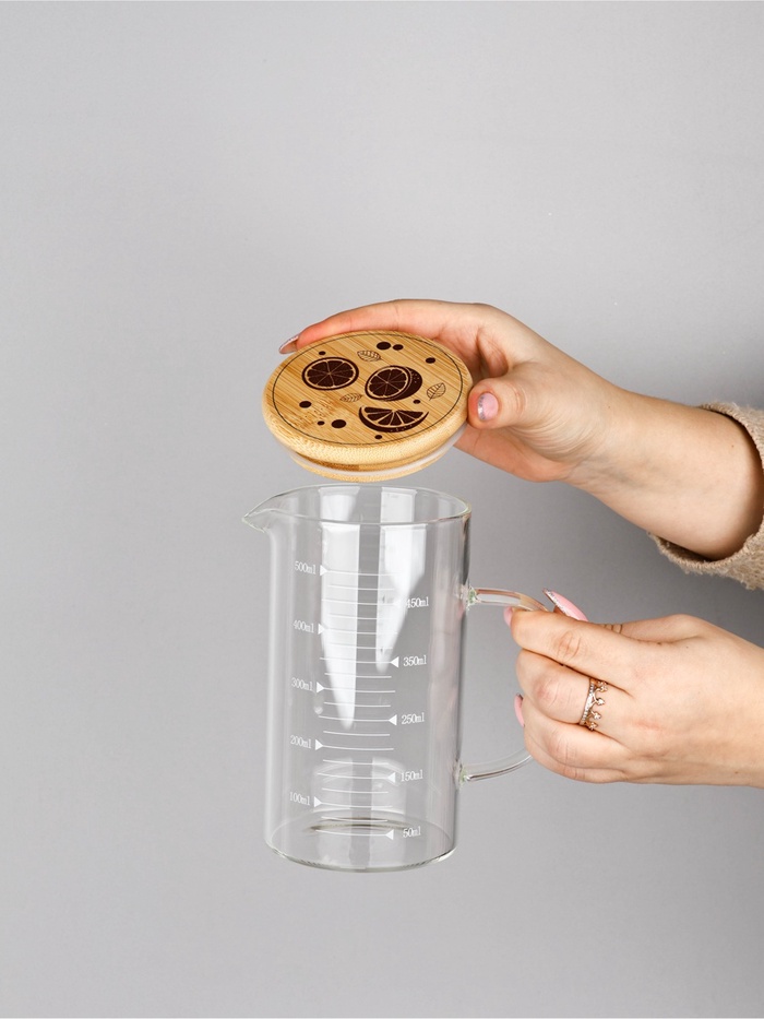 Элегантный стеклянный кувшин с натуральной бамбуковой крышкой станет стильным и функциональным аксессуаром на вашей кухне. Практичная мерная шкала нанесена непосредственно на стекло, что позволяет точно отмерять объем жидкостей без использования дополнительных приборов.