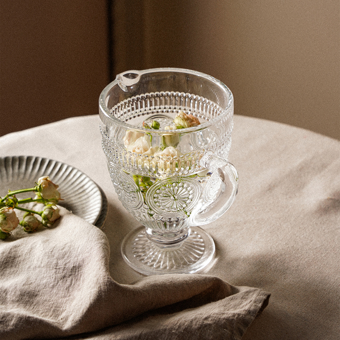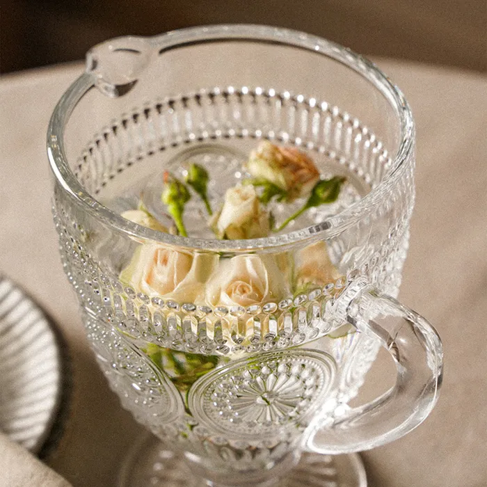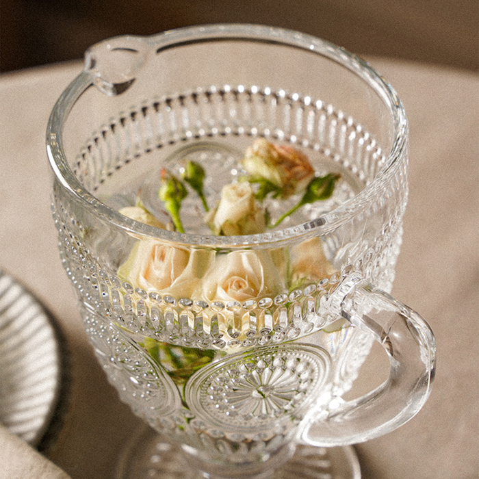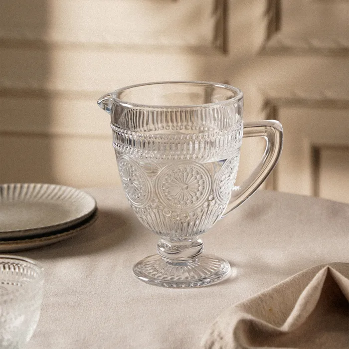 Кувшин объемом 1,1 литра подходит для подачи воды, соков и других напитков. Благодаря рельефной текстуре, он удобно лежит в руке и добавляет нотку изысканности вашей сервировке. Высокое качество стекла обеспечивает долговечность и стойкость к царапинам, а возможность мытья в посудомоечной машине делает уход за ним простым и удобным.