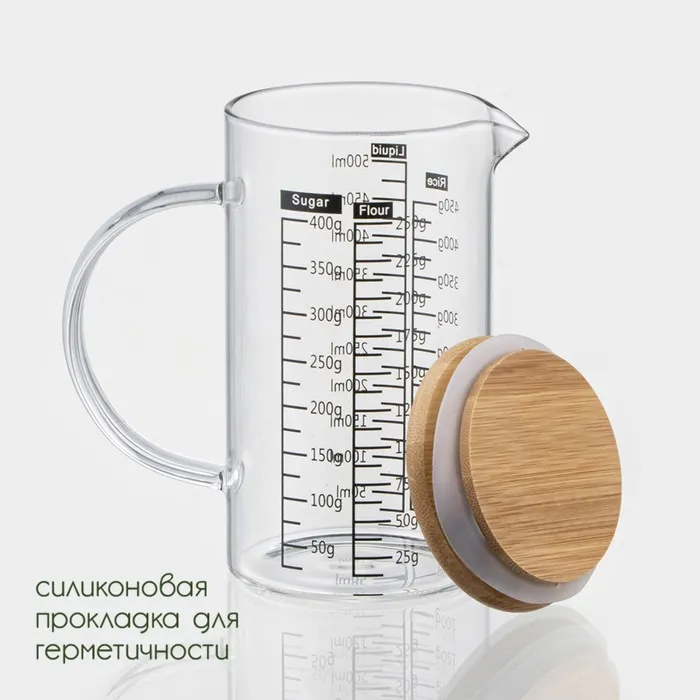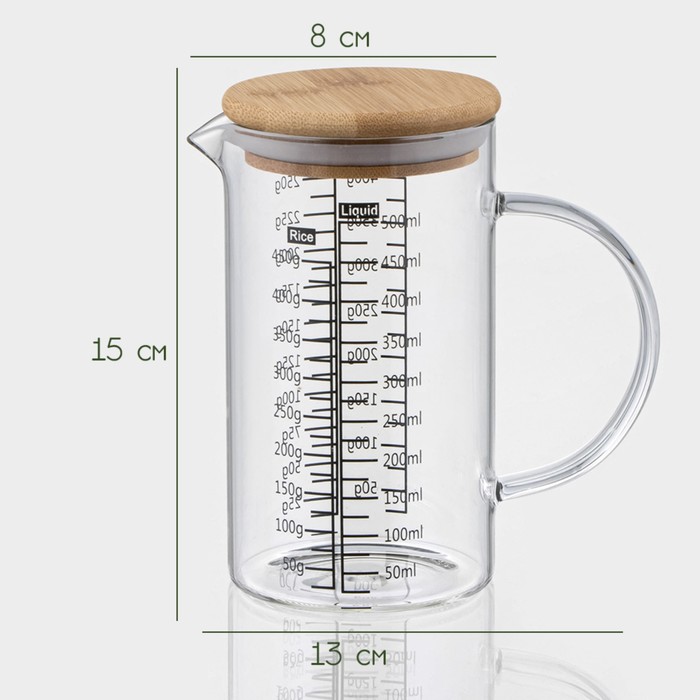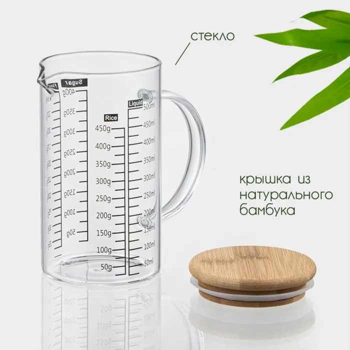 Кувшин мерный BellaTenero «Эко», 500 мл, 13×8×15 см, стекло, с бамбуковой крышкой, прозрачный — Характеристики