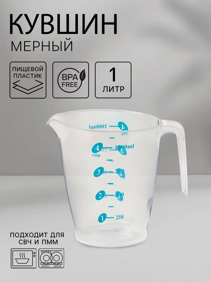 Кувшин мерный «Колор», 1 л, 17×11,5×14 см, пластик, прозрачный — Характеристики