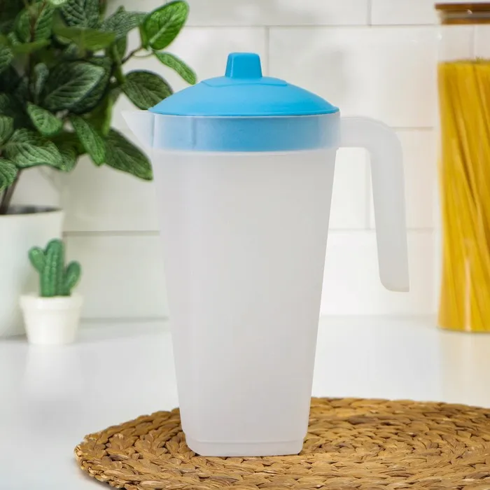 Пластиковый кувшин для воды, с крышкой для теплых, прохладительных и холодных напитков. Кувшин для воды благодаря своему стильному дизайну подойдет под любую кухню. В кувшин для напитков можно налить холодный чай, сок, воду, компот, морс, лимонад, вино.