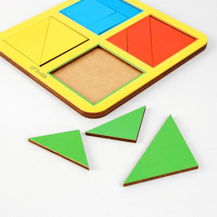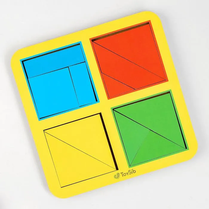 Пазл-квадрат — головоломка, созданная по методике педагога Никитина. Задача ребёнка — из отдельных частей собрать целый квадрат. В процессе игры малыш познакомится с соотношением целого и части, разовьёт воображение, образное мышление и усидчивость.