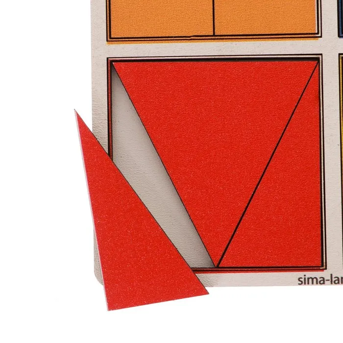 Задача малыша - собрать 6 квадратов из цветных элементов: треугольников, прямоугольников и других фигур.