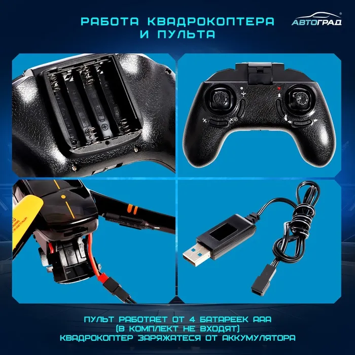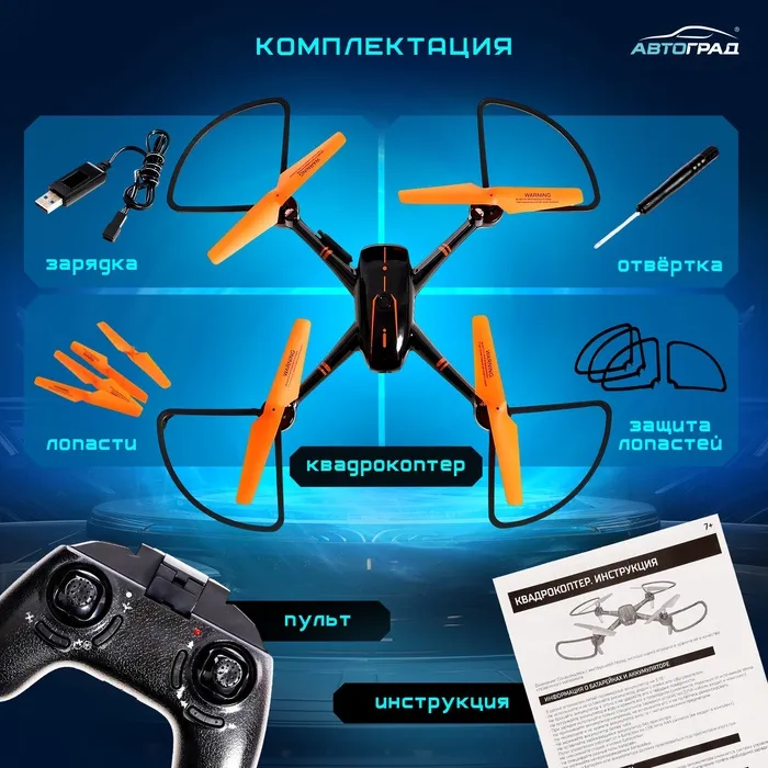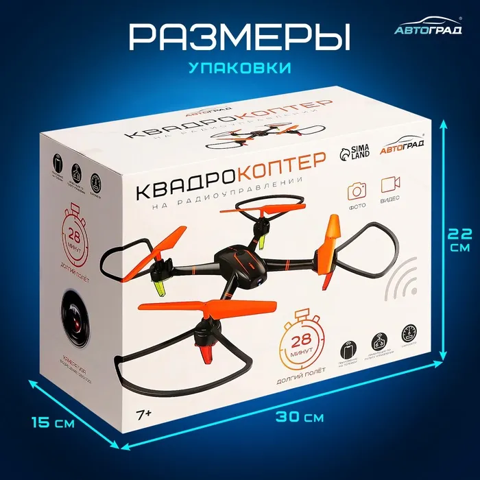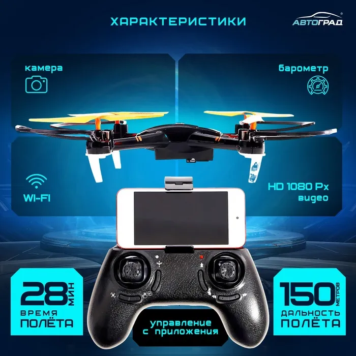 Квадрокоптер на радиоуправлении, время полёта: 28 минут, камера, Wi-Fi, барометр — Характеристики