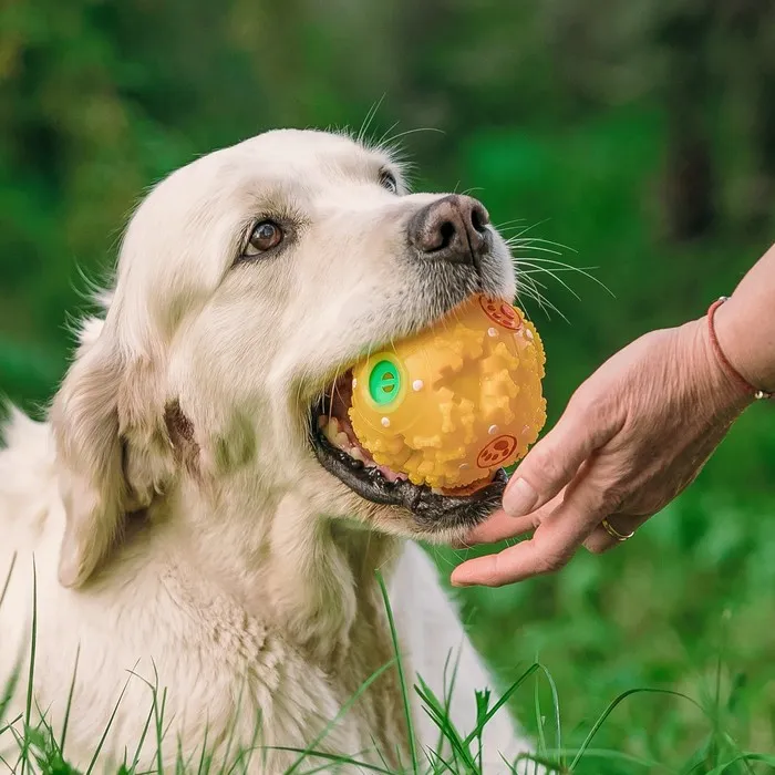 Квакающий мяч для собак большой, жёсткий, 9,5 см, жёлтый — Характеристики
