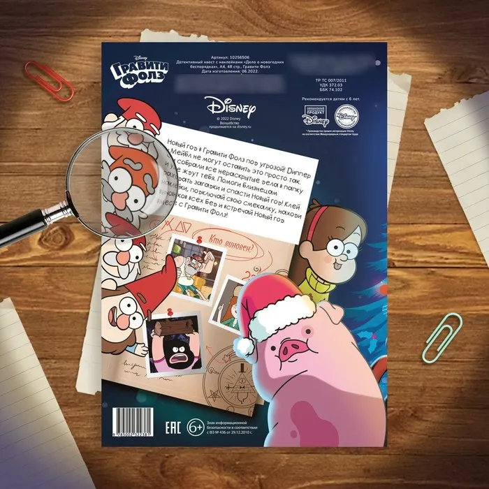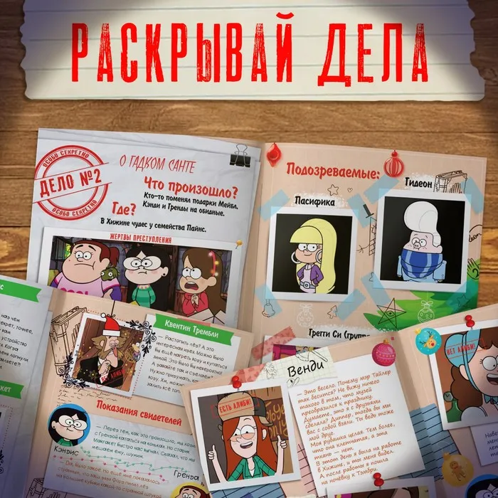 Квест с наклейками «Дело о новогодних беспорядках» — это увлекательное приключение для всех поклонников загадочного мира Гравити Фолз. Присоединяйтесь к Дипперу и Мейбл и помогите им раскрыть тайну новогоднего происшествия!