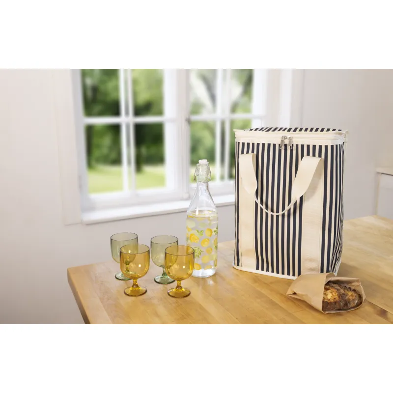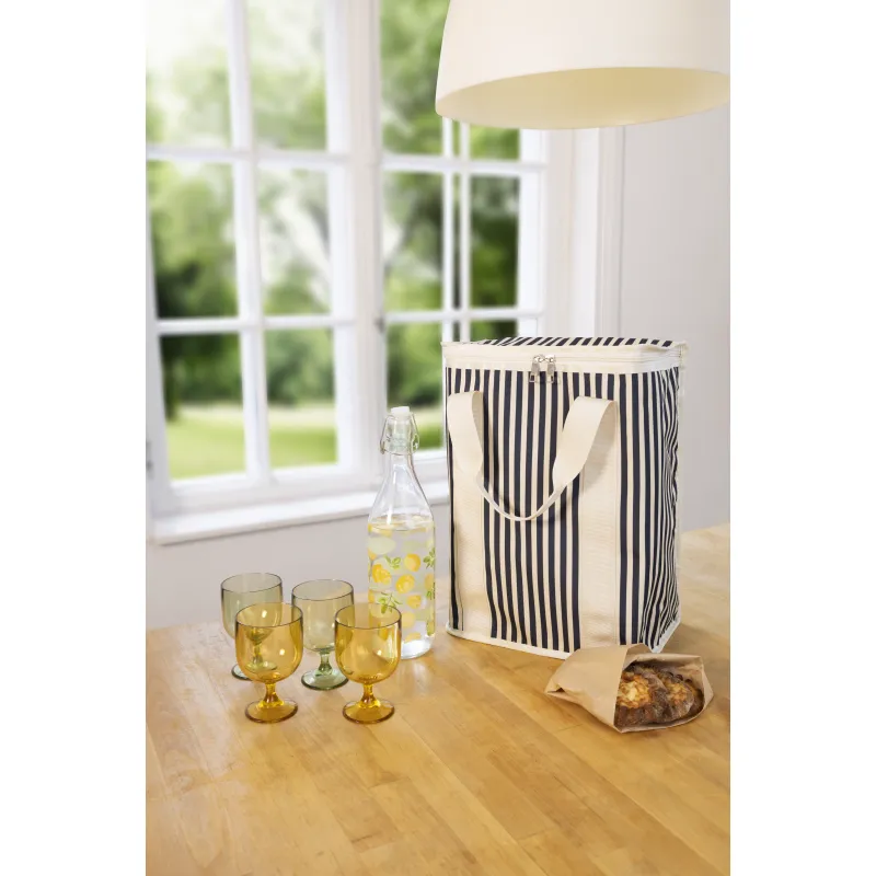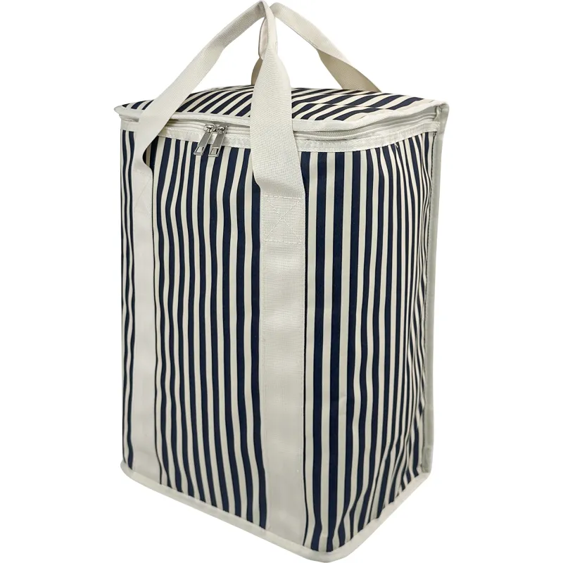 Полоceтая холодильная сумка Kotikulta идеально подходит для походов, пикников или отдыха на пляже. Объем сумки составляет 19 литров, а её размеры – 28 x 18 x 38 см. Верх изготовлен из 100% полиэстера, а подкладка из алюминия, что обеспечивает надежное сохранение температуры ваших продуктов.