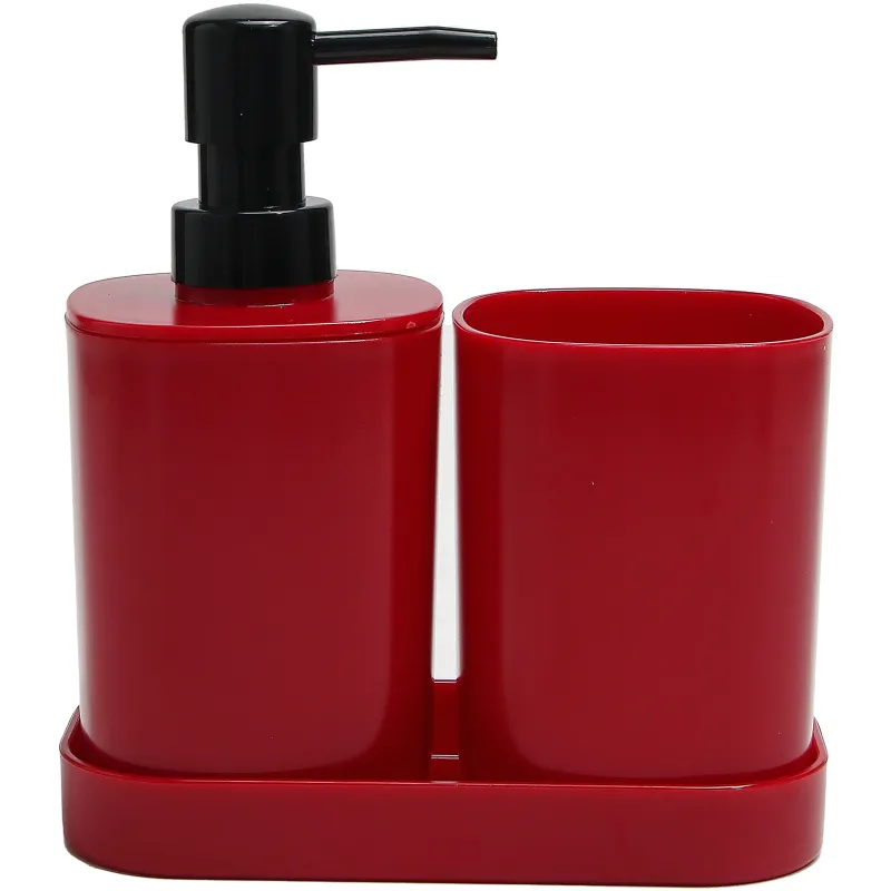Элементы набора изготовлены из прочного пластика, что гарантирует долговечность и легкость в уходе. Яркий красный цвет добавит свежести и уюта в вашу ванную комнату. Удобные размеры позволяют разместить все необходимые аксессуары на небольшой площади.