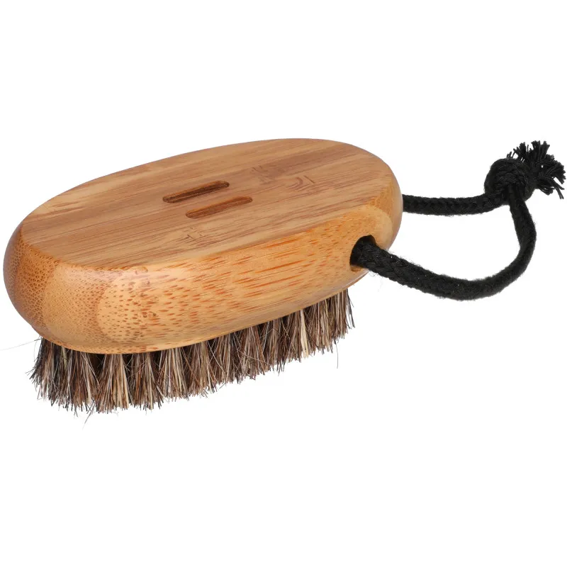 Щетка для ногтей из бамбука от Rento удобно лежит в руке. Она имеет гладкие, округлые формы и поверхность, обработанную бамбуковым маслом. Натуральные щетинки эффективно и бережно очищают ногти и небольшие участки кожи. В комплекте есть шнурок для подвешивания.
