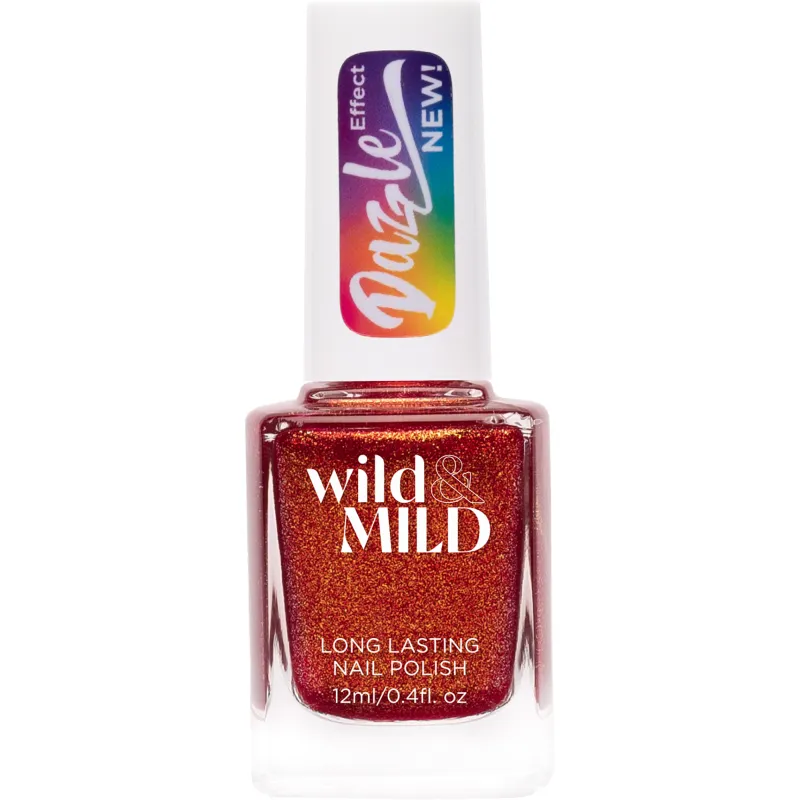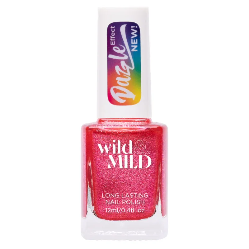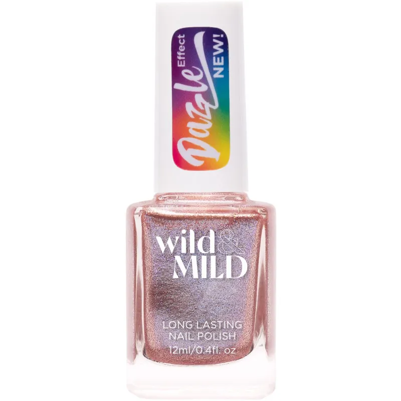 Лаки для ногтей серии Wild&Mild Dazzle Effect предлагают сияющие, насыщенные и очень яркие оттенки. Быстрое время высыхания, держится на ногтях до 7 дней. Легкое нанесение с помощью высококачественной кисти обеспечивает идеальное покрытие всего в один слой. Лак для ногтей содержит UV-защиту и является веганским.