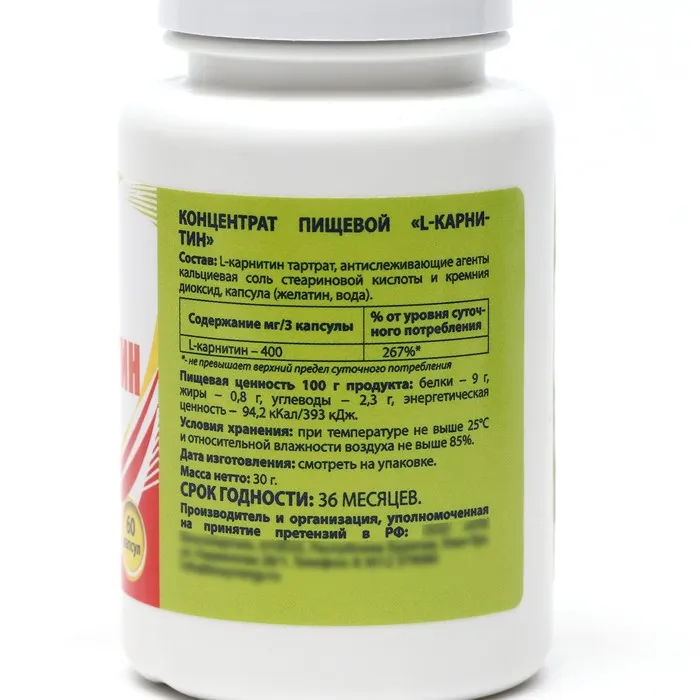 L Карнитин 400 мг, спортивное питание, витамины аминокислоты для коррекции веса, жиросжигатель для похудения / Л карнитин 60 капсул — Характеристики