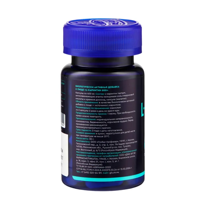 Состав: L-карнитин тартрат, антислеживающие агенты кальциевая соль стеариновой кислоты и кремния диоксид, капсула (гидроксипропилметилцеллюлоза).