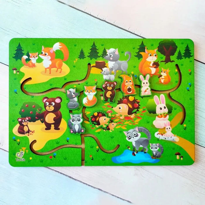 Развивающая игрушка представляет собой лабиринт с фигурками, которые необходимо размещать в соответствующие отверстия. Игрушка способствует развитию логики, мелкой моторики и координации движений у детей. Яркие цвета и интересный дизайн привлекают внимание малышей и делают игру увлекательной и познавательной.