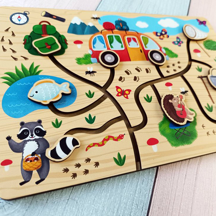 Развивающая игрушка представляет собой лабиринт с фигурками, которые необходимо размещать в соответствующие отверстия. Игрушка способствует развитию логики, мелкой моторики и координации движений у детей. Яркие цвета и интересный дизайн привлекают внимание малышей и делают игру увлекательной и познавательной.