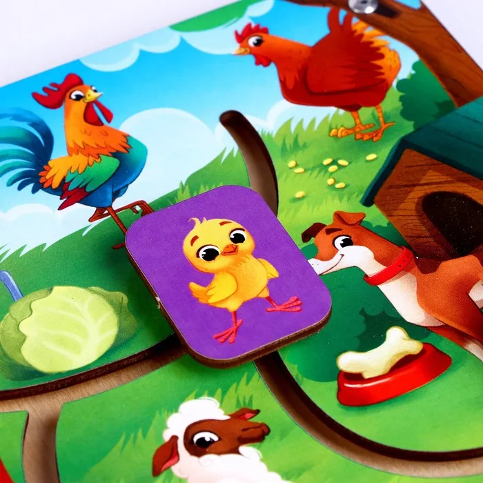 все элементы игрушки выполнены из безопасного и чистого материала – дерева.размер лабиринта 20 х 27 см.7 движущихся бегунковзадача ребёнка доставить каждого малыша к мамеТакая игрушка развивает память, логику и тренирует моторику ребёнка!