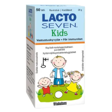 подсластитель (ксилит), препарат молочнокислых бактерий (мальтодекстрин, антиоксидант (аскорбиновая кислота)), наполнитель (гидроксипропилцеллюлоза), эмульгатор (магниевые соли жирных кислот), ароматизатор клубники и малины, колекальциферол, который стимулирует нормальное функционирование иммунной системы. Таблетку ксилита можно давать ребенку ежедневно, например, после еды. Пищевая добавка не заменяет разнообразное и сбалансированное питание или здоровый образ жизни.