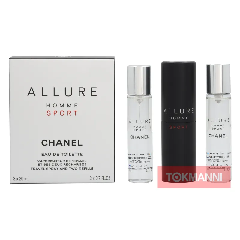 Подарочный набор Chanel Allure Homme Sport – это воплощение элегантности и свежести. В комплекте вы найдете два флакона Edt Spray Refill по 20 мл и один флакон Edt Spray 20 мл. Эти ароматы прекрасно подойдут как для повседневного использования, так и для особых случаев.