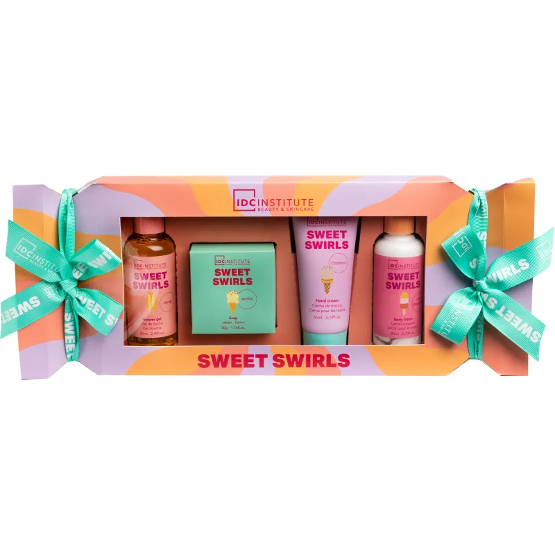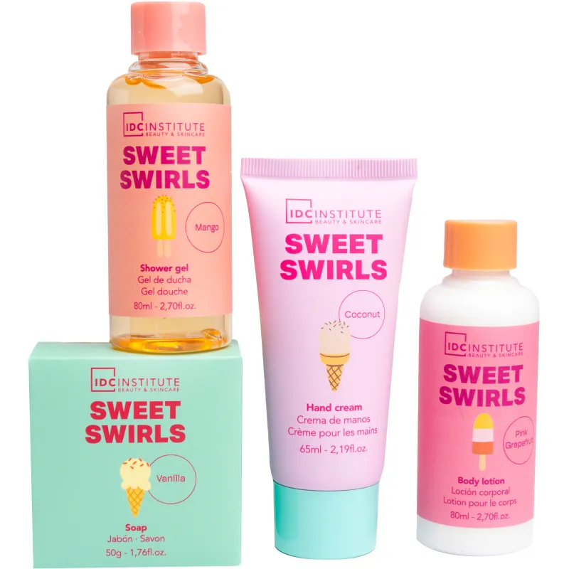 Яркий подарочный набор IDC Institute Sweet Swirls наполнен сладко пахнущими средствами для ухода за кожей. В небольших упаковках вы найдете очаровательный гель для душа, мыло, а также кремы для рук и тела. Этот набор станет прекрасным подарком для себя или близких!