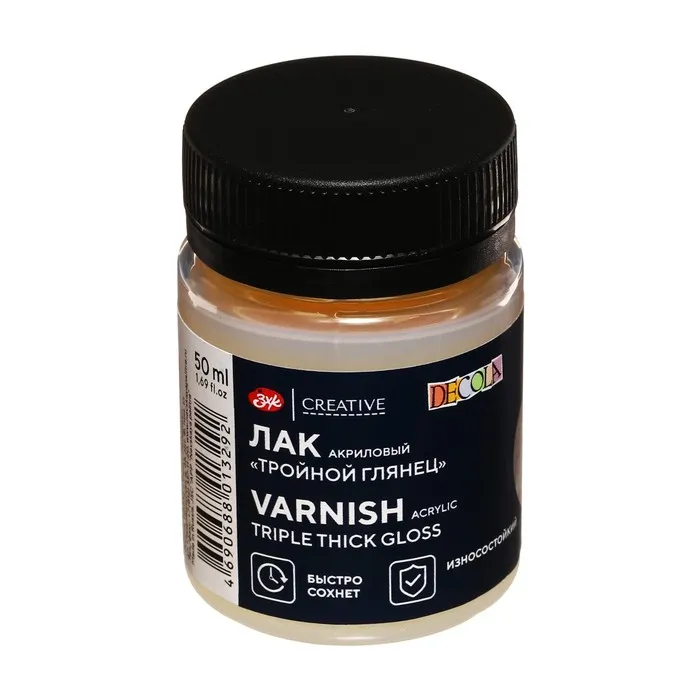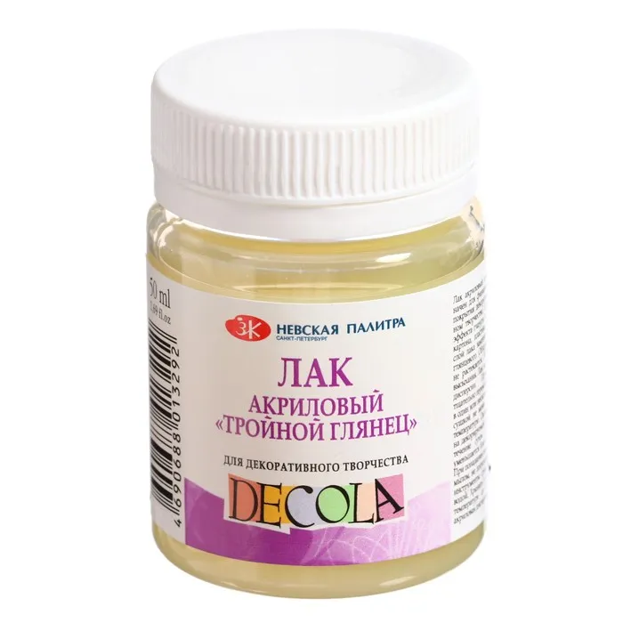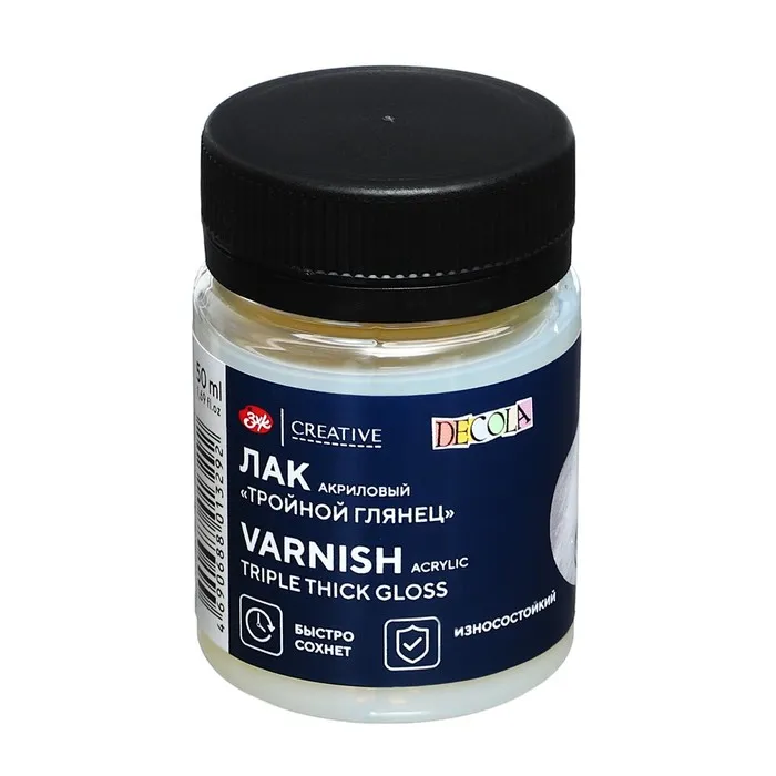 Лак акриловый глянцевый, на водной основе 50 мл, ЗХК Decola "Тройной глянец" 5828961 — Характеристики