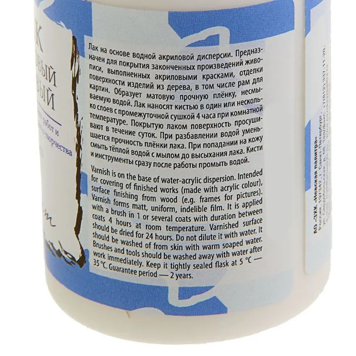 Лак акриловый матовый, на водной основе 100 мл, ЗХК "Сонет", 4627921 — Характеристики
