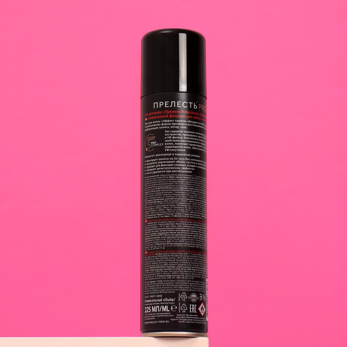В состав всех средств для укладки волос Прелесть Professional включен комплекс DiProFactor, который сочетает в себе современные фиксирующие компоненты и витамины, благодаря чему обеспечивается двойной усиленный эффект – длительная естественная фиксация без склеивания волос и защита прически в любых климатических условиях.