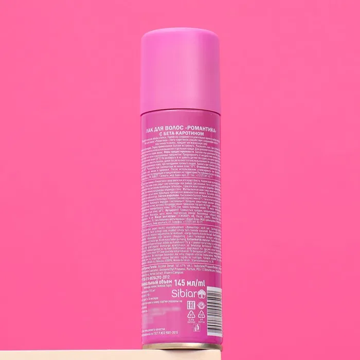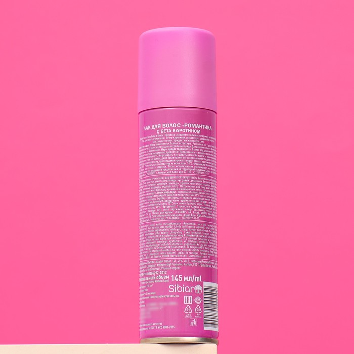 Лак для волос "Романтика", очень сильная фиксация, с В-каротином, 145 мл — Характеристики