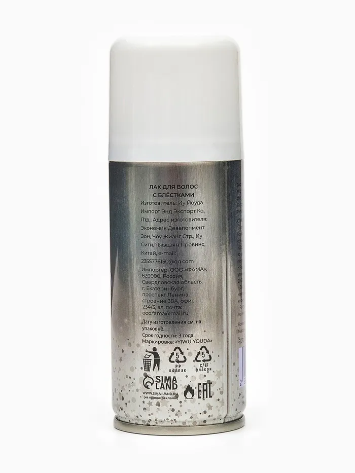 Лак для волос Secret Beauty с блестками, серебро, 100 мл — Характеристики