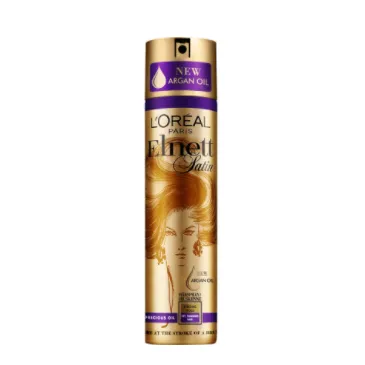Лак для волос с аргановым маслом L'Oréal Paris Elnett Satin создан специально для сухих и поврежденных волос. Содержит сверхлегкое аргановое масло, которое лечит и защищает сухие и поврежденные волосы. Состав помогает против пушистости и делает волосы блестящими.