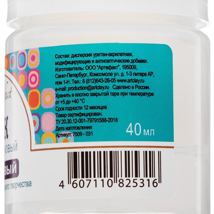 Лак полиуретановый для полимерной глины, глянцевый, Artifact, 40 мл