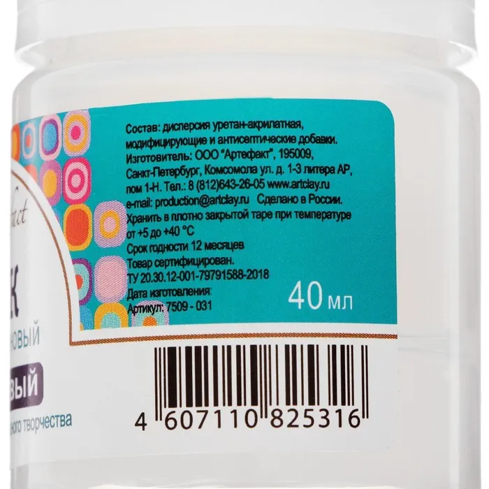 Лак полиуретановый для полимерной глины, глянцевый, Artifact, 40 мл — Характеристики