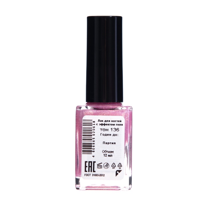 Лак с эффектом геля "Формула", тон 136, цвет розово-золотистый искрящийся, 12 мл — Характеристики