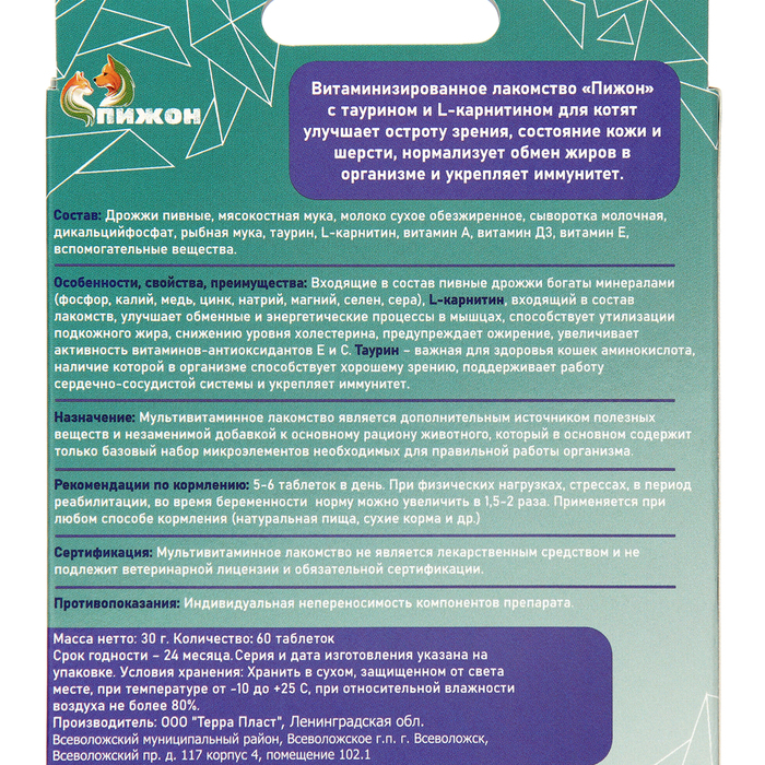 Эта полезная и вкусная добавка к ежедневному питанию кошек содержит все необходимые витамины и микроэлементы, которые способствуют хорошей работе всех внутренних органов, правильному обмен веществ и укреплению иммунитета.