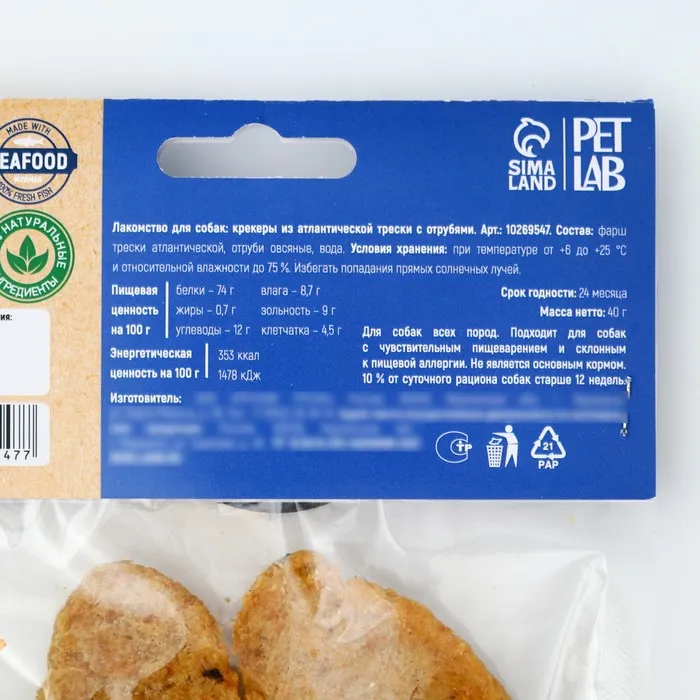 Это экологически чистый продукт, в составе которого фарш трески свежего вылова из Баренцева моря. Слоистая структура лакомства очищает зубной налет, что обеспечивает профилактику пародонтоза. Лакомства сделаны с помощью умной технологии сушки мяса без воздействия тепла. Такой способ помогает сохранить все полезные свойства и вкус мяса. Не содержит соли, ГМО, красителей и консервантов.