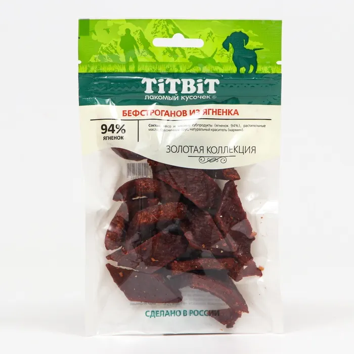 Золотая коллекция – это линейка лучших лакомств TITBIT, разработанных при участии владельцев домашних животных и их питомцев. Бефстроганов из ягненка - это мясной деликатес, который, благодаря высокому содержанию мяса (94 %) и бережной технологии приготовления, имеет привлекательный внешний вид, невероятный вкус и нежную текстуру. Ягненок, входящий в основу лакомства, является диетическим источником высококачественного животного белка, витаминов и минералов. Ни один гурман не сможет устоять перед таким деликатесом.