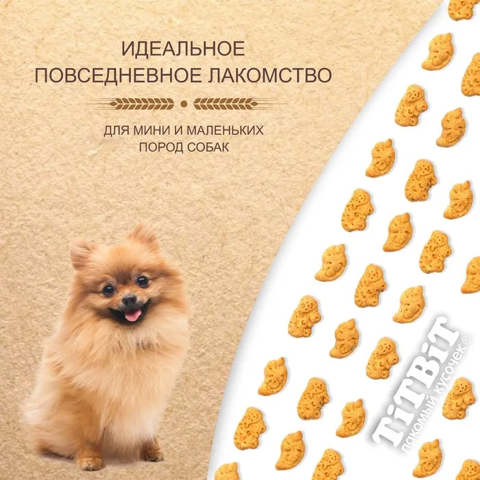 Печенье крекер для собак маленьких и миниатюрных пород, изготовлено из мясных субпродуктов и полезных злаков. Кальций и фосфор, входящие в состав крекера, способствуют росту и правильному развитию костной ткани и зубов.