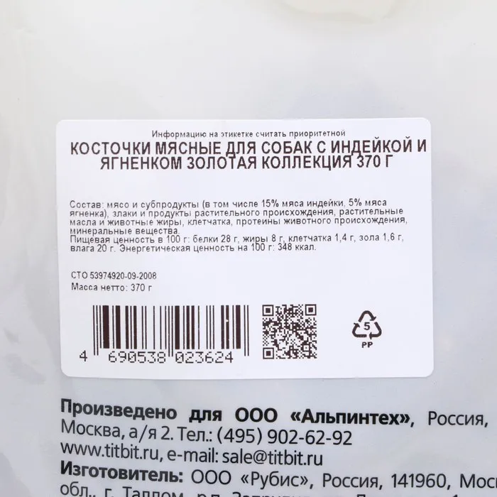 Золотая коллекция – это линейка лучших лакомств TITBIT, разработанных при участии владельцев домашних животных и их питомцев. Мясные косточки с индейкой и ягненком содержат глюкозамин, который стимулирует восстановление хрящевой ткани и улучшает подвижность суставов. Идеально подходит в качестве поощрения при обучении, дрессировке или просто за хорошее поведение.