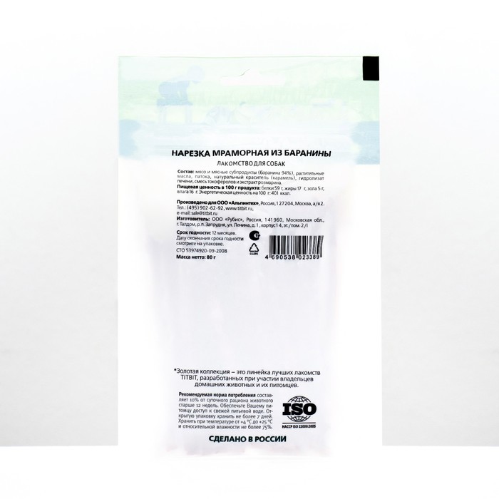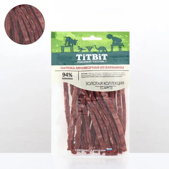 Лакомство TitBit «Золотая коллекция» для собак нарезка мраморная из баранины, 80 г — Характеристики