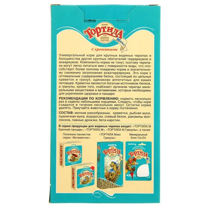 Лакомство "Тортила МАКС" для крупных водяных черепах, с креветками, 70 г. — Характеристики